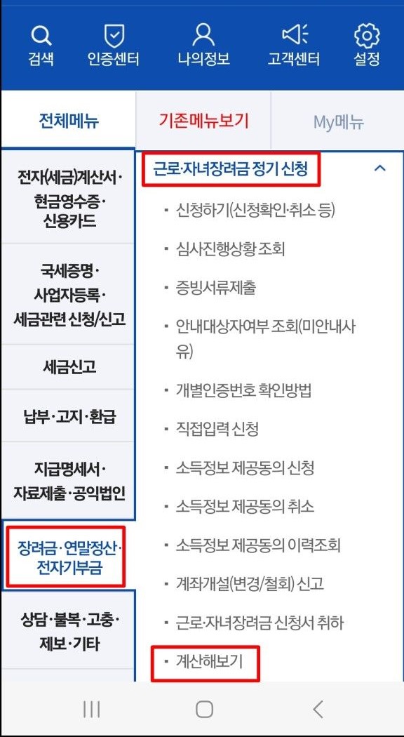 3. 근로장려금 산정액 다운로드